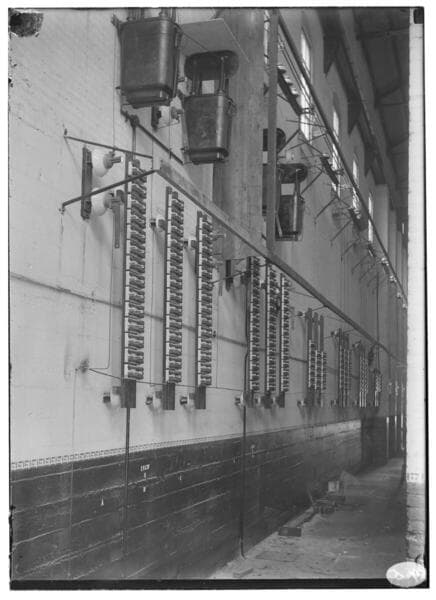The interior of Los Angeles #3 Steam Plant, showing the switchboard gallery.