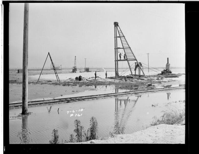 Long Beach Steam Station, Plant #1 - Pile Driver working on Intake Structure.
