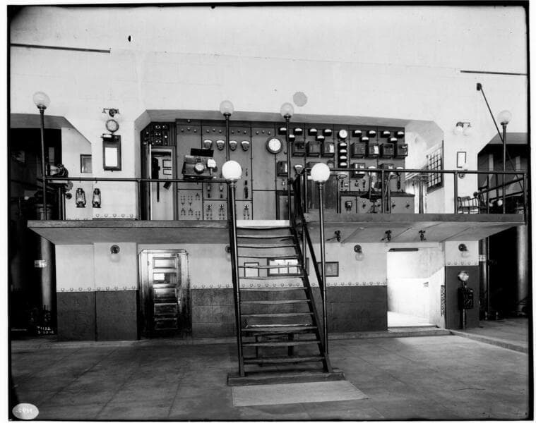 Kern River No. 1 - Powerhouse interior - Switchboard and electrical switches.