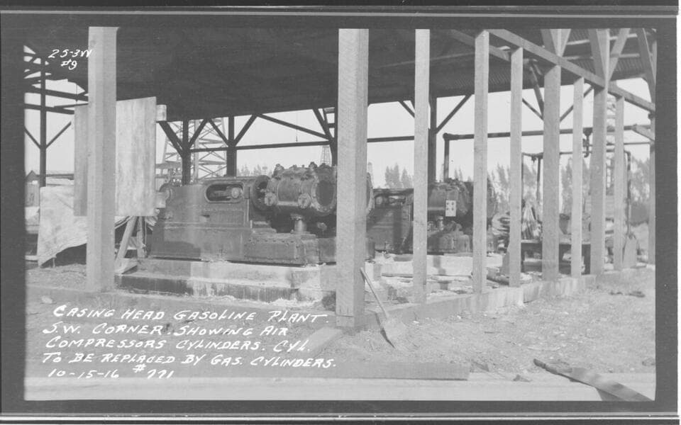 Oil Wells - Casing Head Gasoline Plant showing compressor house.