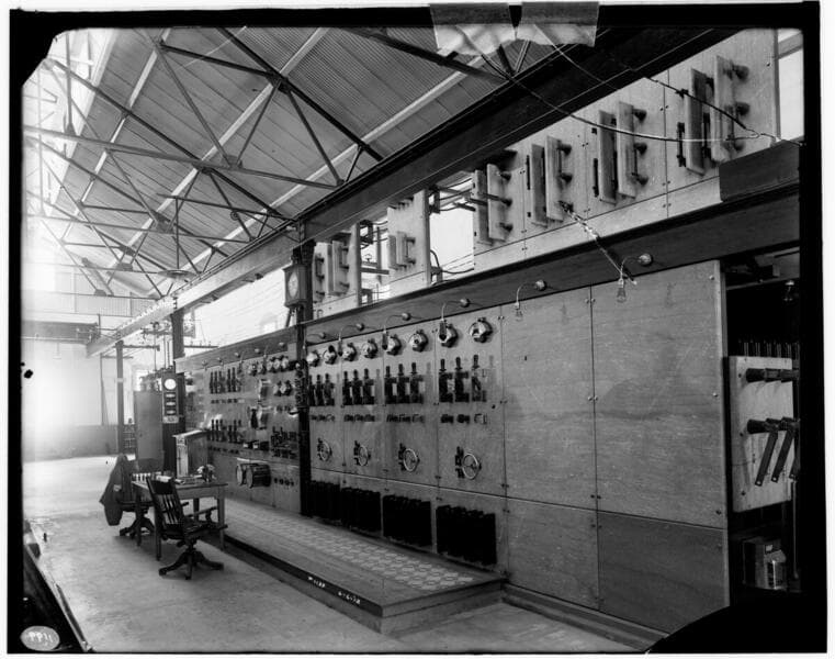 The switchboard in the power house at Santa Ana River #1 Hydro Plant