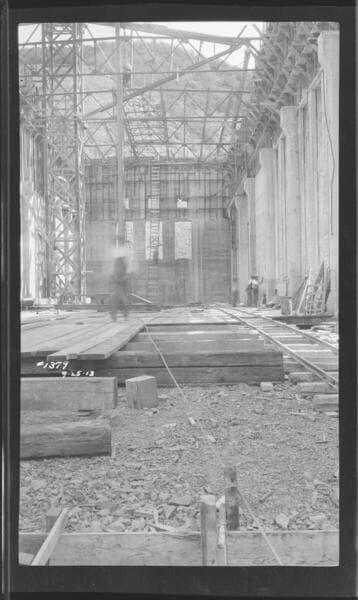 Los Angeles City Powerhouse - #1 along the Los Angeles River Aqueduct. [showing walls of powerhouse going up during construction]