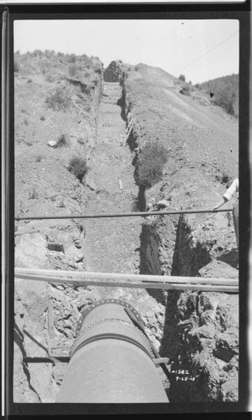 Los Angeles City Powerhouse - #1 along the Los Angeles River Aqueduct. [Close-up view of the penstock during construction.]