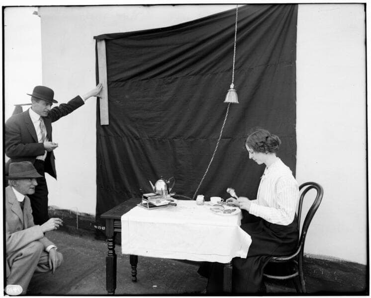 A3.1 - Appliances miscellaneous - Miss Gladys Jones conducting a cooking demonstration with an electric cooking appliance. She is eating a meal.