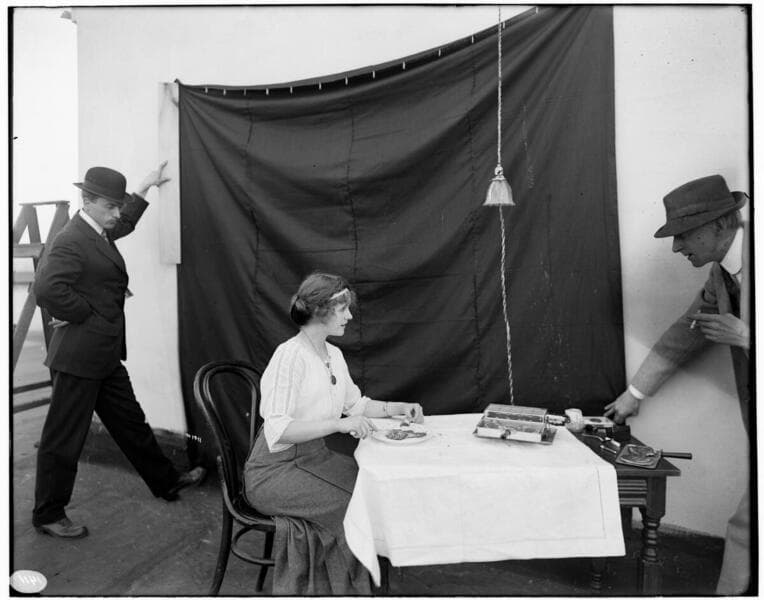 A3.1 - Appliances miscellaneous - Miss Gladys Jones conducting a cooking demonstration with an electric cooking appliance. She is eating a meal.