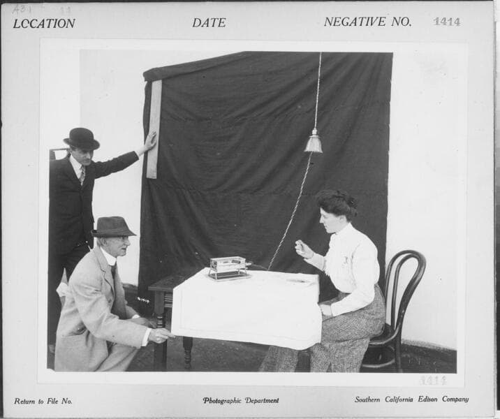 A3.1 - Appliances miscellaneous - Miss Gladys Jones conducting a cooking demonstration with an electric cooking appliance. She is eating a meal.