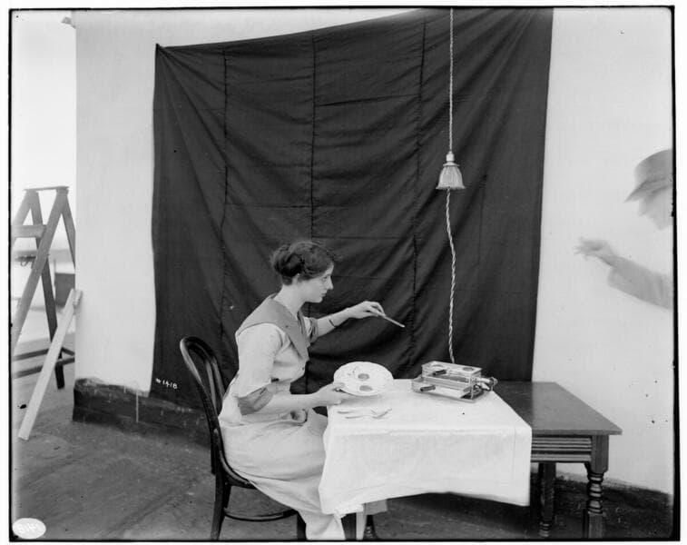 A3.1 - Appliances miscellaneous - Miss Gladys Jones conducting a cooking demonstration with an electric cooking appliance. She is eating a meal.