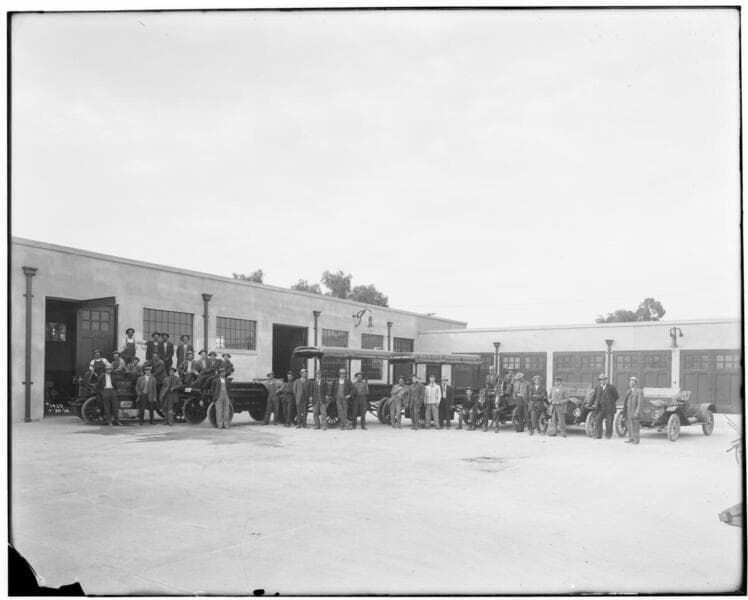 P1.1 - Group Portraits - Employees of Los Angeles Garage with hats on.