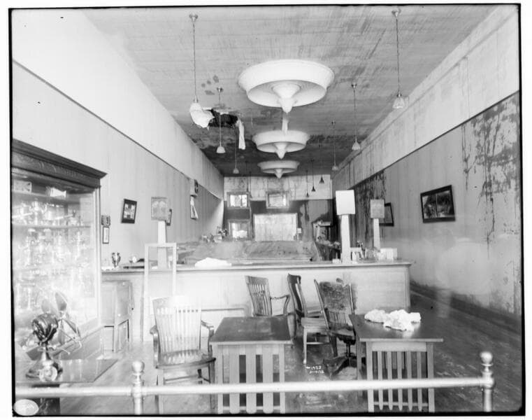 Local Offices A-Z - The staff of the Pasadena Commercial Office set-up for business in the alley after the fire.