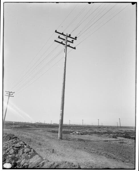 A1.2 - Accidents - Looking west on Anaheim Street at Dominguez Street in the Dominguez Harbor Tract near Long Beach. [Shows 33 kV San Pedro-Long Beach Line, and trolley line in background]