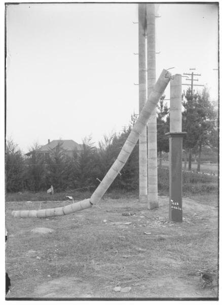 T2 Testing - View of a test on a wooden pole under 3000 lb. strain.