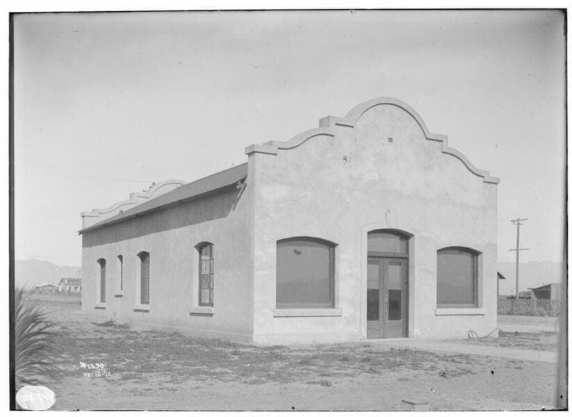 Van Nuys Substation - [showing a garage in the background with several automobiles parked inside.]