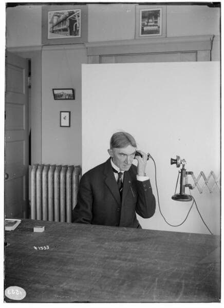 P1.3 - Portraits, P-S - Charles H. Pierson [talking on telephone against a studio backdrop].