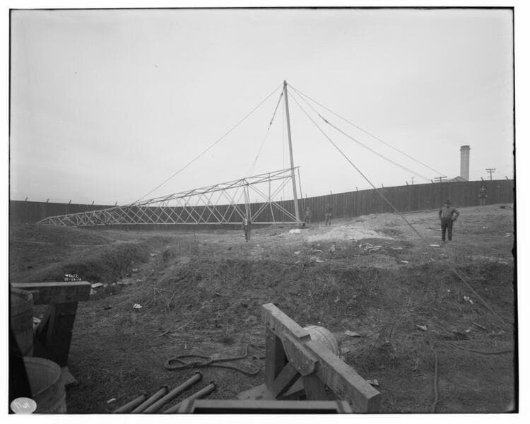 Erecting tower at Los Angeles #3 for Long Beach Transmission line