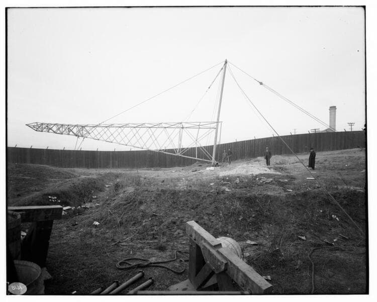 Miscellaneous Transmission - A detail view of the erection of a Long Beach Transmission line tower at Los Angeles #3.
