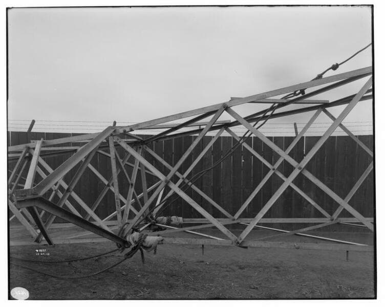 Miscellaneous Transmission - A detail view of the erection of a Long Beach Transmission line tower at Los Angeles #3.