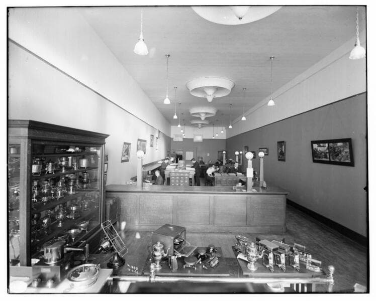 Local Offices A-Z - The interior of the Pasadena Local Office, [showing electric appliance displays]