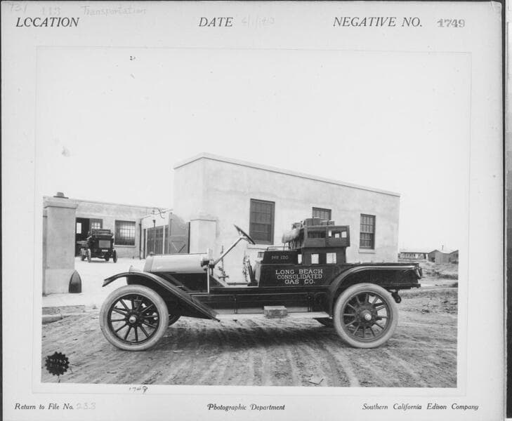 T3.1 Transportation - Autos, Trucks, & Railcars - Long Beach Consolidated Gas Co., flat-bed truck, #119 [at garage]
