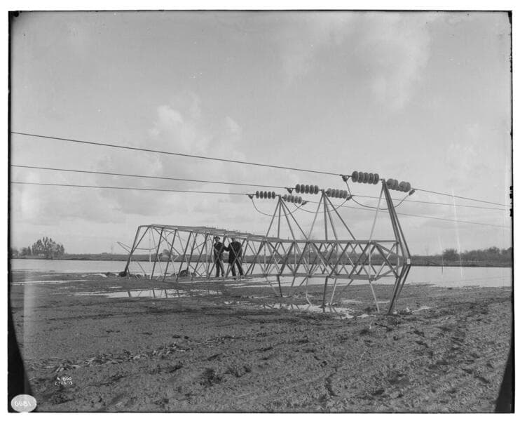 Long Beach-Lighthipe-Laguna Bell Transmission Line - A fallen transmission tower on the Long Beach line.