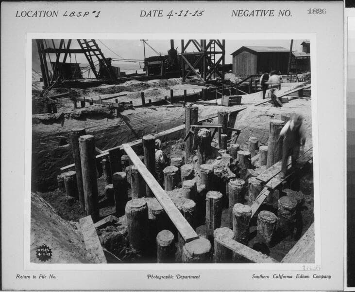Long Beach Steam Station, Plant #1 - [Construction of the foundation for stack at Long Beach Steam Plant.]