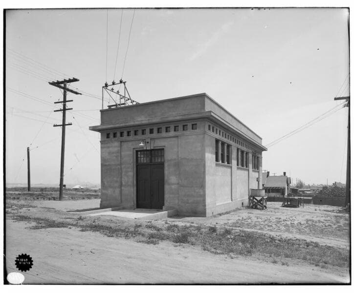 Santa Monica Substation - exterior [general view showing station building and Rack].