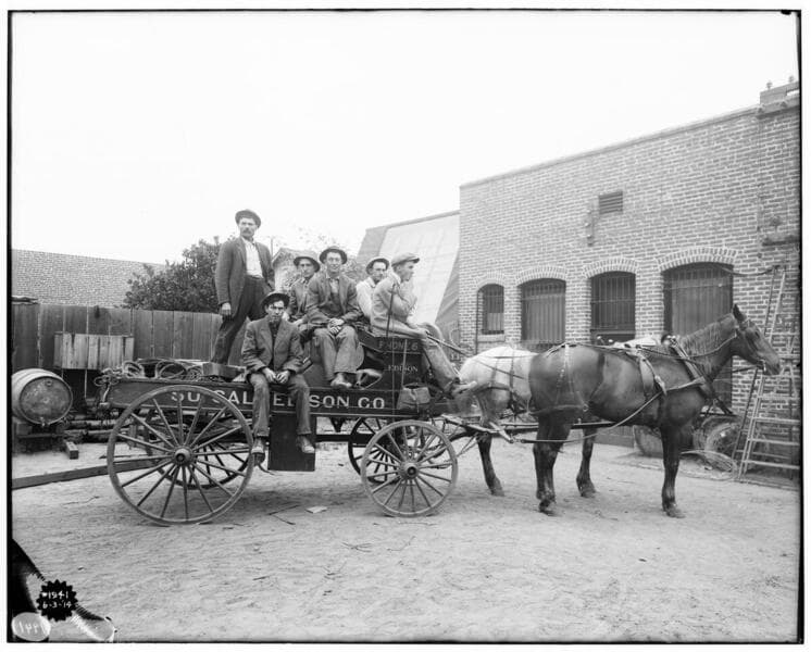 P1.1 - Group Portraits - Electric Distribution System Boys, Long Beach "Overhead Gang" [in their horse drawn wagon].