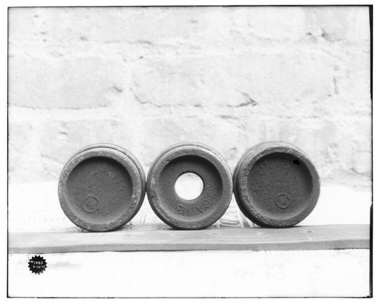 T3.1 Transportation - Autos, Trucks, & Railcars - The spark plugs out of a 2 1/2 ton truck. [The label reads: Edison-2 1/2-Ton Truck No. 79 - In Service 6 Months-9-Days-Run 7829 Miles-First Time Out Of Cylinder.