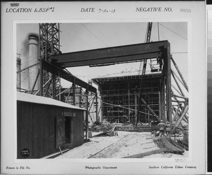 Long Beach Steam Station, Plant #1 - Raising the [50 ton, Girder] Crane into place.