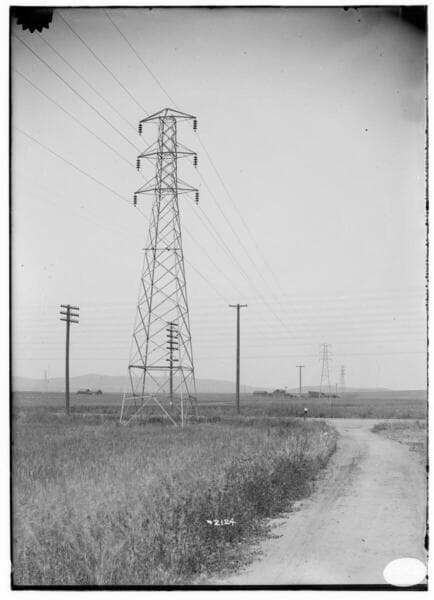 Transmission towers carrying 60 KV lines from Newmark Substation to Los Angeles #3 Steam Plant.