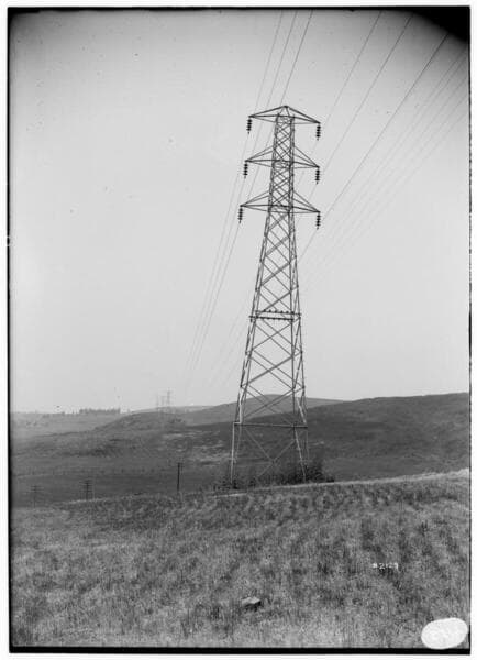 Transmission towers carrying 60 KV lines from Newmark Substation to Los Angeles #3 Steam Plant.