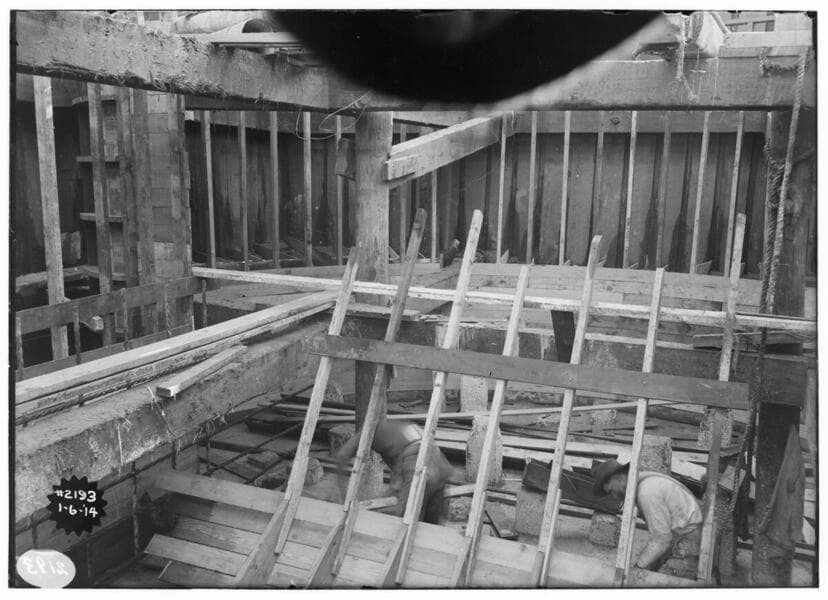Long Beach Steam Station, Plant #1 - Pouring concrete at end of discharge.