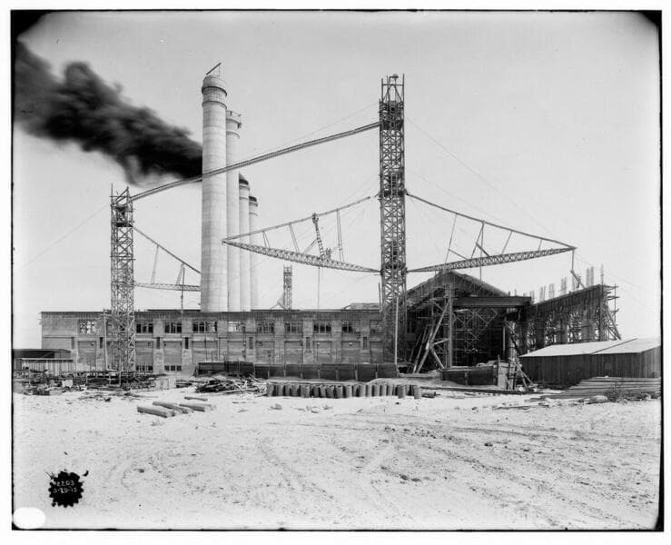 Long Beach Steam Station, Plant #1 - A general view from the south (smoke).