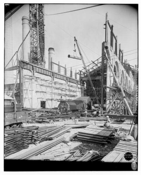 Long Beach Steam Station, Plant #1 - Erecting steel work in Engine Room addition.