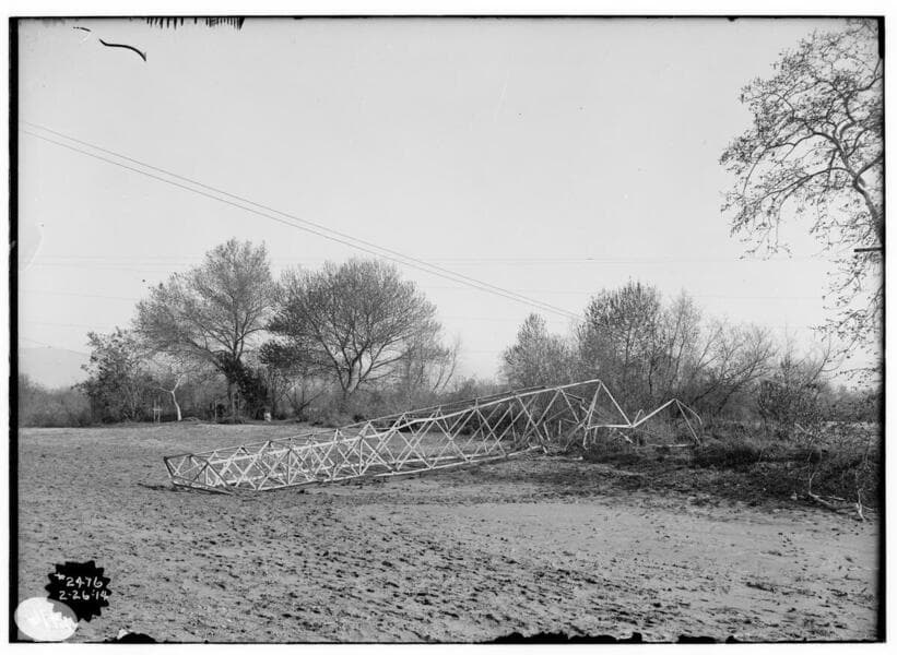 A1.4 - Natural Disasters - Showing the result of the storm of February 20, 1914. One of the Kern River Tansmission Towers is down.