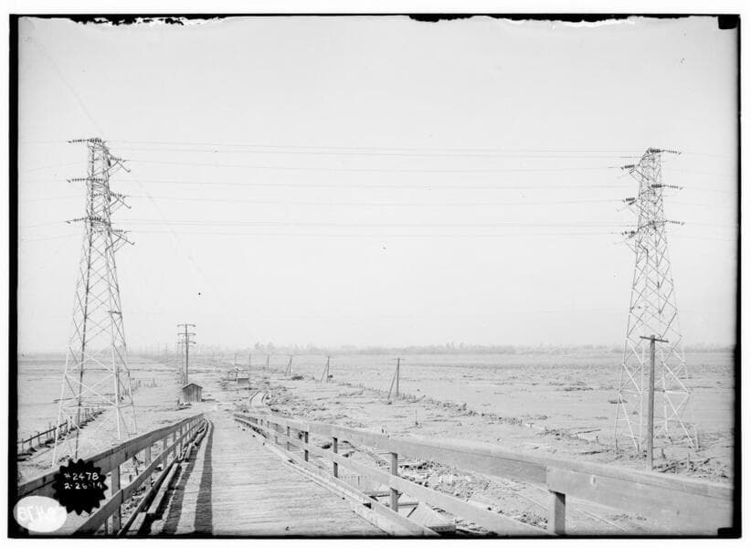 Long Beach-Lighthipe-Laguna Bell Transmission Line - Temporary transmission line on Rio Hondo at Vinvale replacing the line torn down by the storm of February 20th.