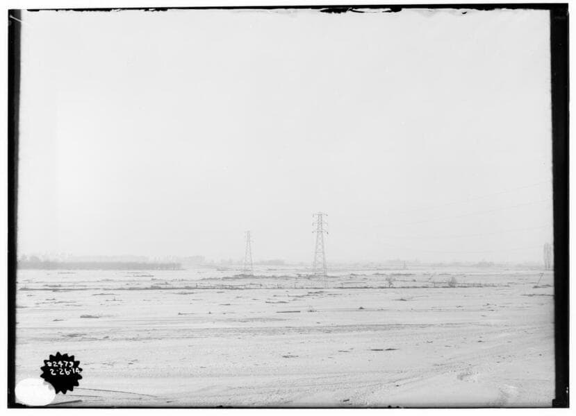Long Beach-Lighthipe-Laguna Bell Transmission Line - Temporary line below Vinvale on the Long Beach Transmission Line. The damage was caused by the storm of February 20th.