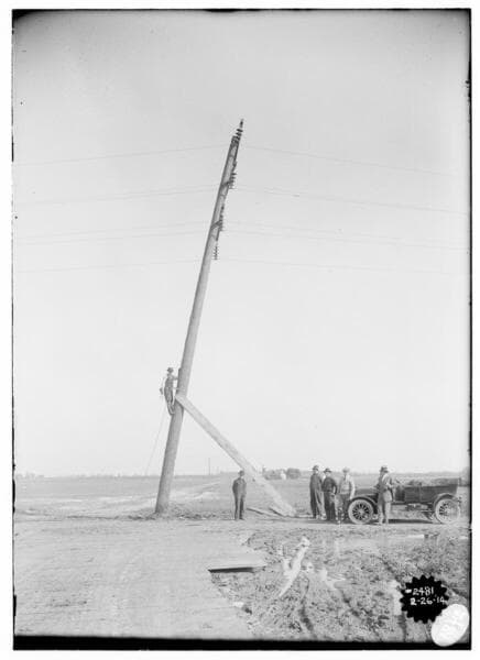 Long Beach-Lighthipe-Laguna Bell Transmission Line - Temporary line below Vinvale on the Long Beach Transmission Line. The damage was caused by the storm of February 20th.