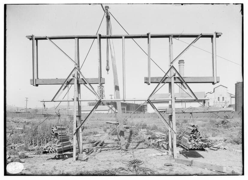 T2 Testing - Showing test on insulator cross arm, Long Beach Transmission Line Tower.