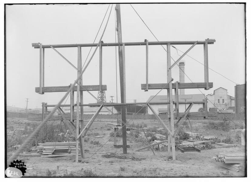 T2 Testing - Showing test on insulator cross arm, Long Beach Transmission Line Tower.