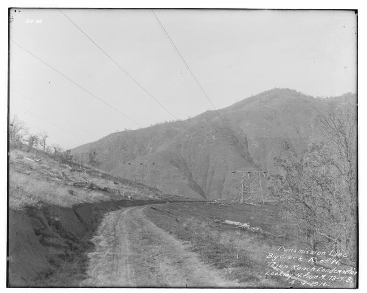 Big Creek T/L right-of-way - Taken in connection with Tejon Ranch condemnation suit. Looking North from Mile 178, - tower 5 towards tower 4.