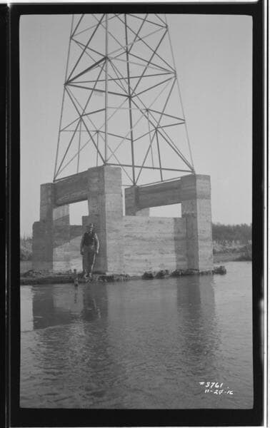 Miscellaneous Transmission - Tower 101 rebuilt with huge concrete base near marsh