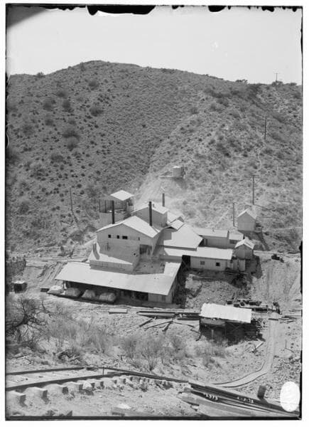 Power Consumers - General - Borax Mines, showing the railroad tracks leading into the mining buildings.