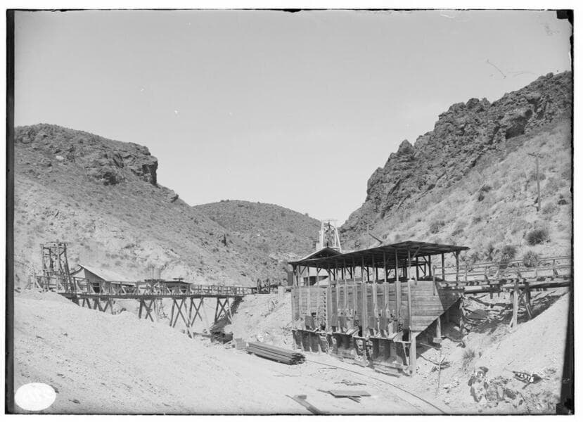 Power Consumers - General - Borax Mines, showing the railroad tracks leading into the mine.