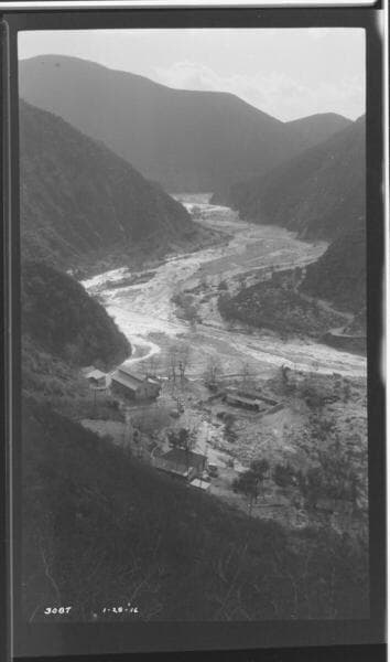 Santa Ana River #2 Powerhouse - Result of storm at SAR 2, shot of SAR 2 and stable from trail above.