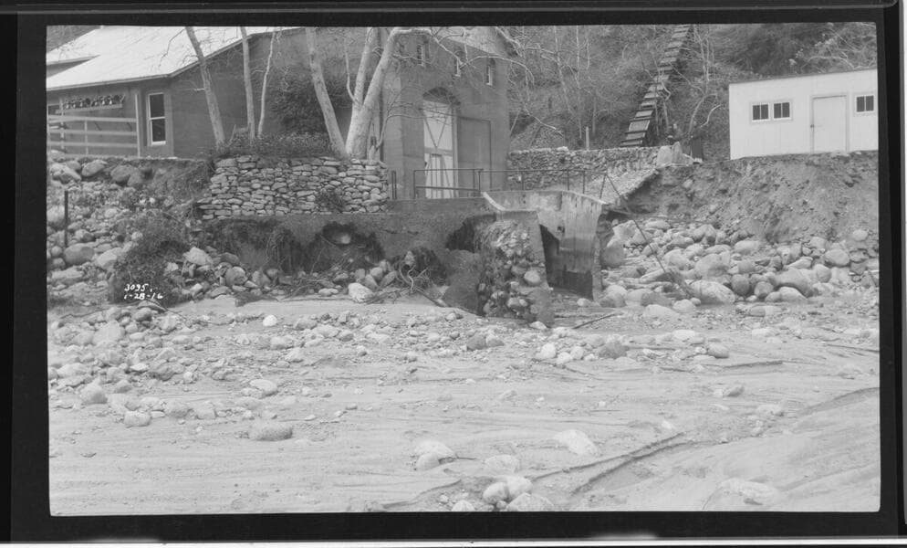 Santa Ana River #2 Powerhouse - SAR 2, [damaged] tailrace, and platform after storm.