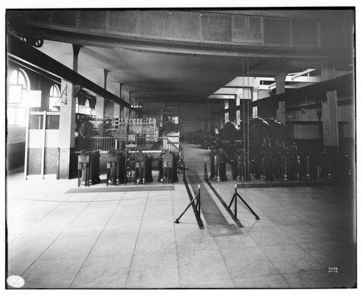The interior of Los Angeles #2 Substation showing the generators