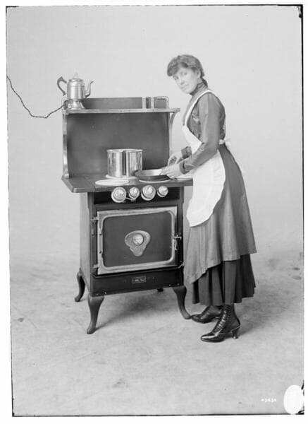 A3.3 - Ranges - Woman demonstrating a Westinghouse Electric Range.