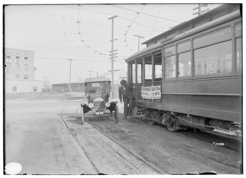 A1.7 - "Safety First" - Artificial respiration, with pulmotor. [Two men conducting a first aid demonstration. They appear to be on the roof of the General Office].