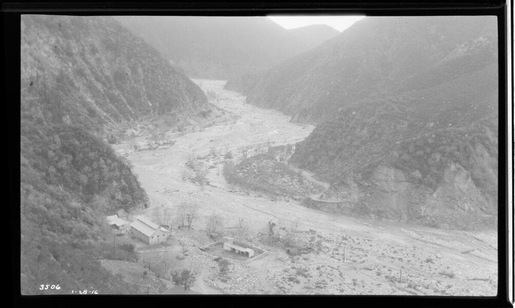 Santa Ana River #2 Powerhouse - Result of storm at SAR 2, shot of SAR 2 and stable from trail above.