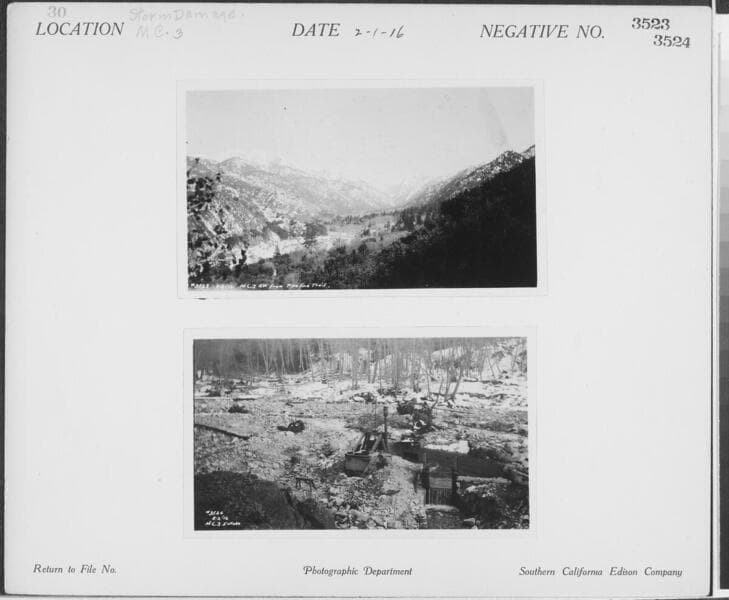 Mill Creek 1, 2&3 Powerhouse - Storm damage - Mill Creek Headworks pipeline on south side of canyon. (Siphon #1, Mill Creek #3)